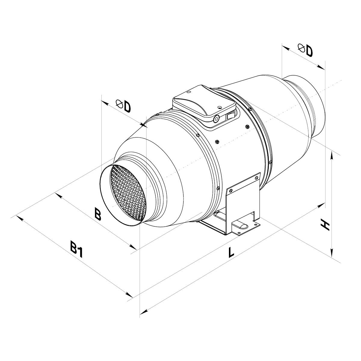 Vnější skříň ventilátoru je vyrobena z oceli potažené vrstvou polymeru. Perforace vnitřní skříně umožňuje průchod zvukových vln otvory a jejich přechod do vrstvy absorbující zvuk pod specifickým úhlem. Skříň má vnitřní tepelně a zvukově izolační vrstvu z minerální vaty o tloušťce 50 mm. Skříň se speciální perforací a materiál absorbující zvuk zajišťují tlumení v širokém frekvenčním rozsahu. Vnitřní skříň a oběžné kolo jsou vyrobeny z vysoce kvalitního a odolného plastu.