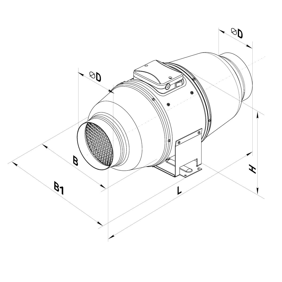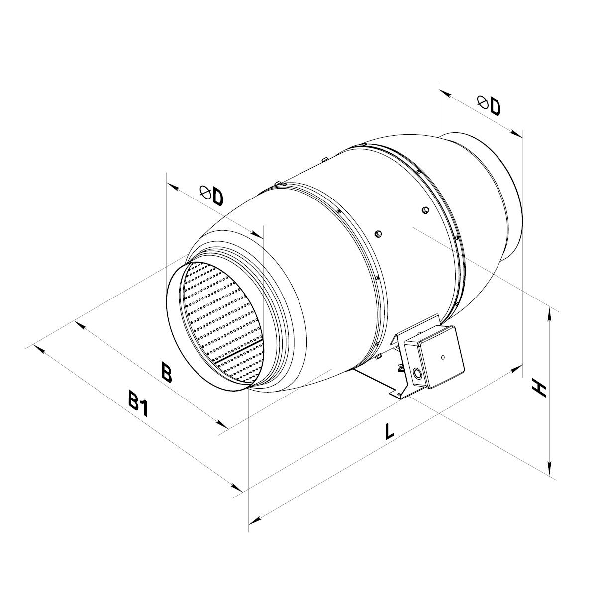 Vnější skříň ventilátoru je vyrobena z oceli a opatřena polymerovým nástřikem. Perforace vnitřní skříně umožňuje průchod zvukových vln otvory a jejich přechod do vrstvy absorbující zvuk pod specifickým úhlem. Skříň má vnitřní tepelně a zvukově izolační vrstvu z minerální vaty o tloušťce 50 mm. Skříň se speciální perforací a materiál absorbující zvuk zajišťují tlumení v širokém frekvenčním rozsahu. Vnitřní skříň a oběžné kolo jsou vyrobeny z vysoce kvalitního a odolného plastu.