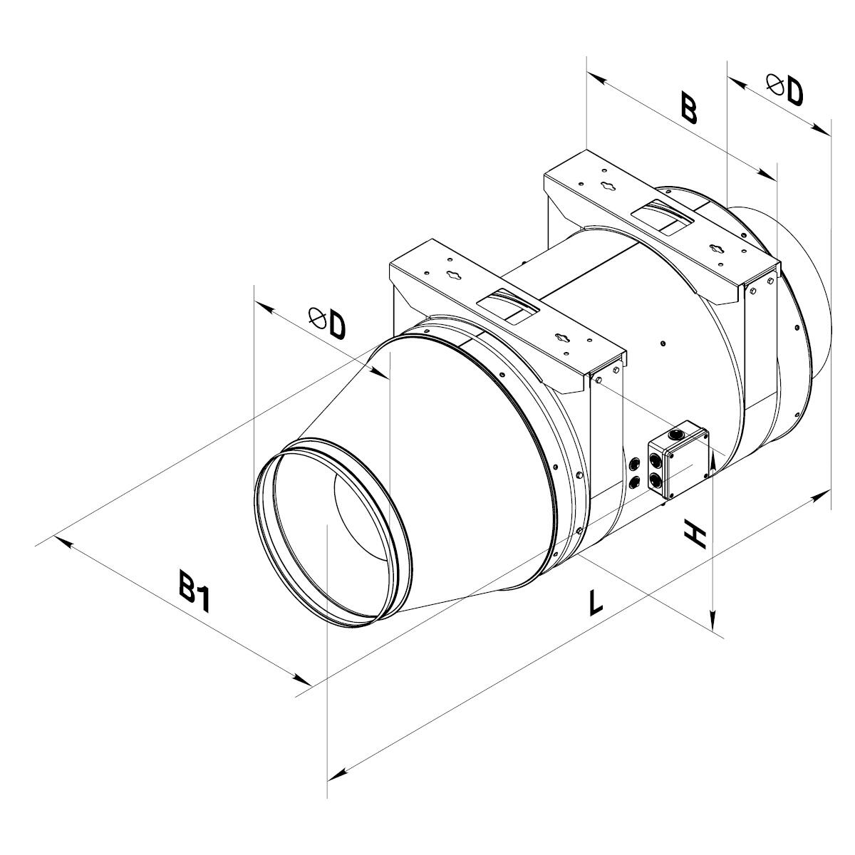 Diagonální radiální ventilátory ve zvukově a tepelně izolované skříni se vzduchovým výkonem do 1950 m3/h.
