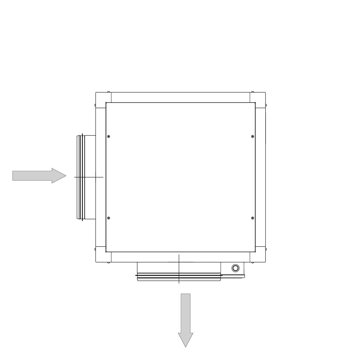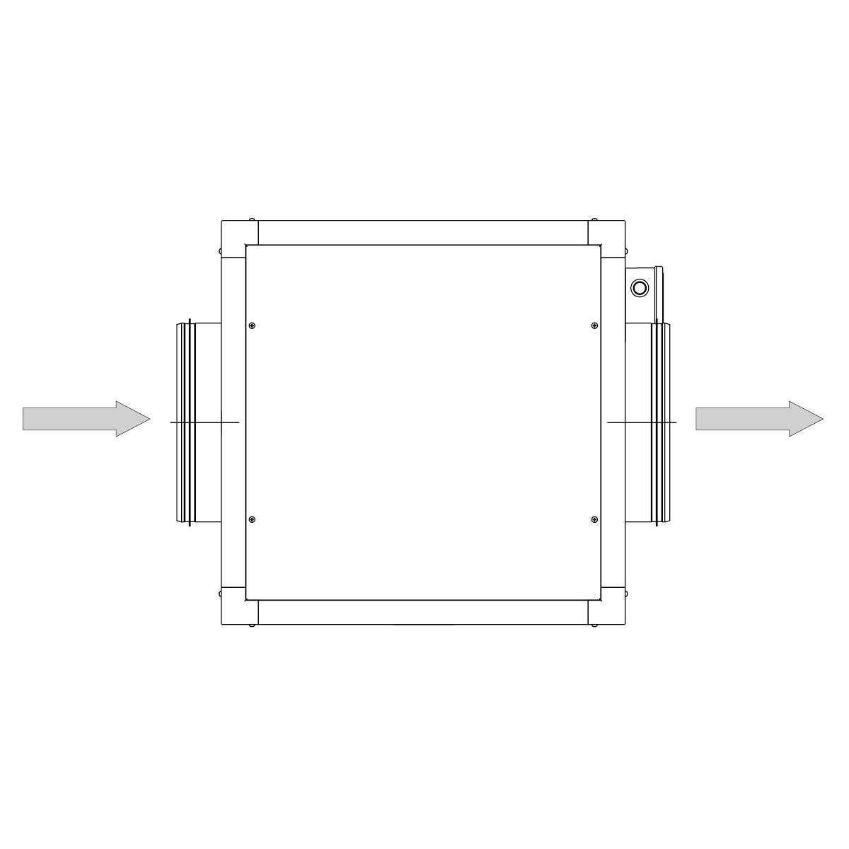 Skříň ventilátoru je vyrobena z hliníkového rámu sepnutého hliníkovými pásky a z demontovatelných aluzinkových panelů. Skříň je opatřena tepelnou a zvukovou izolací, pro kterou je použita 20 mm vrstva nehořlavé minerální vlny. Spojovací trubky, které také slouží jako konektory pro absorpci vibrací, jsou k dispozici s kruhovými a čtyřhrannými profily.