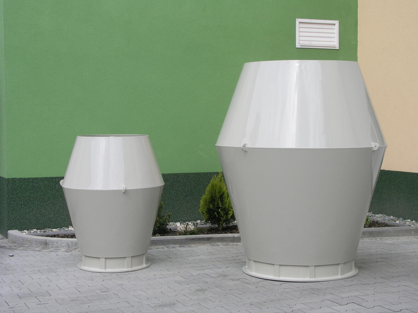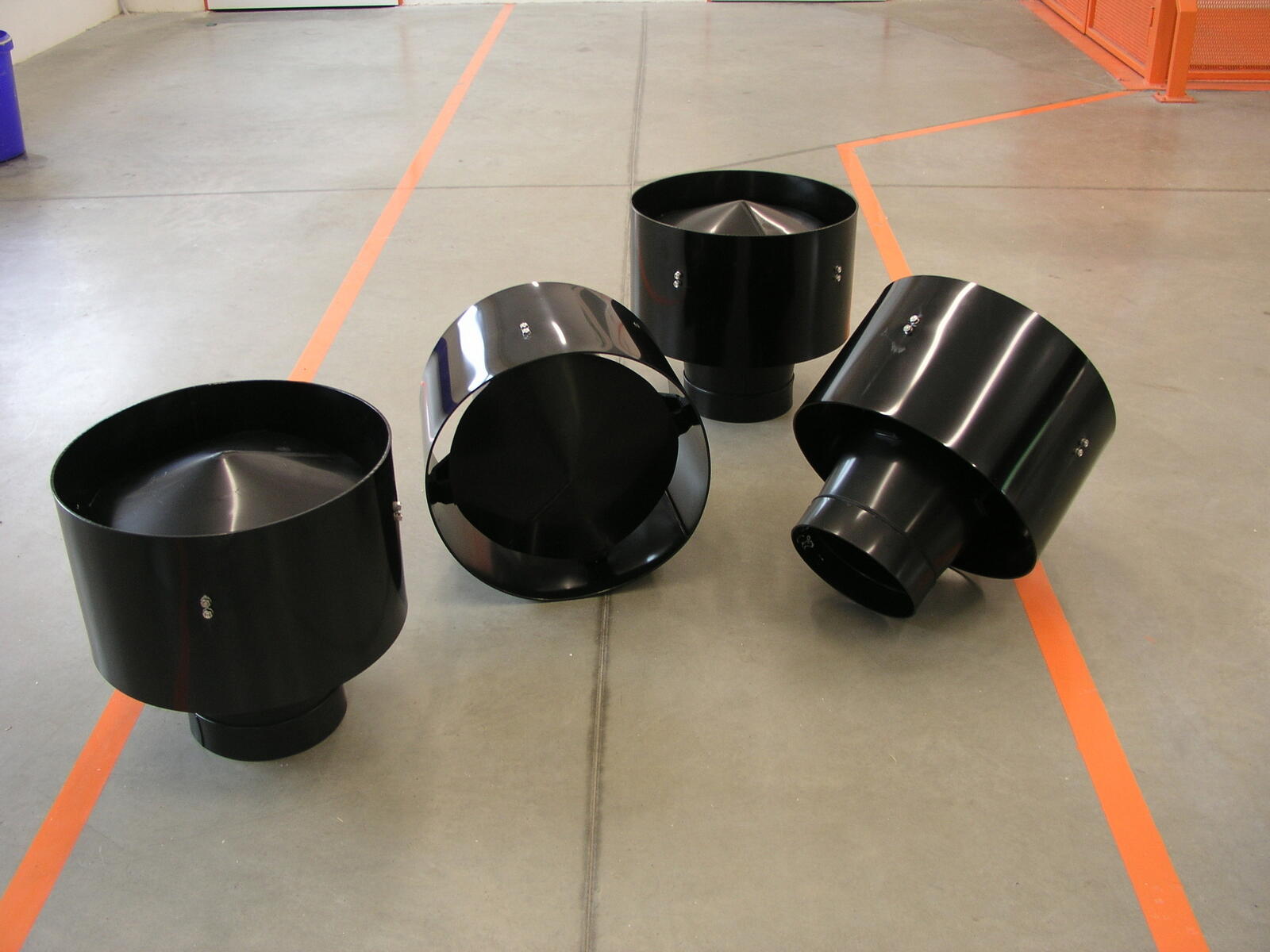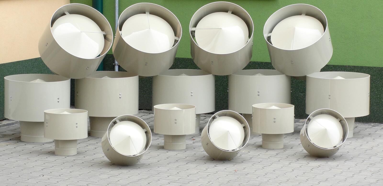 Výfukové hlavice se osazují na vertikální větve potrubí jako koncové kusy. Svým tvarem zabraňují vnikání deště a sněhu do potrubí. Pro větší stabilitu po osazení na střechách jsou hlavice vybaveny kotvícími oky.