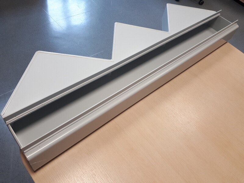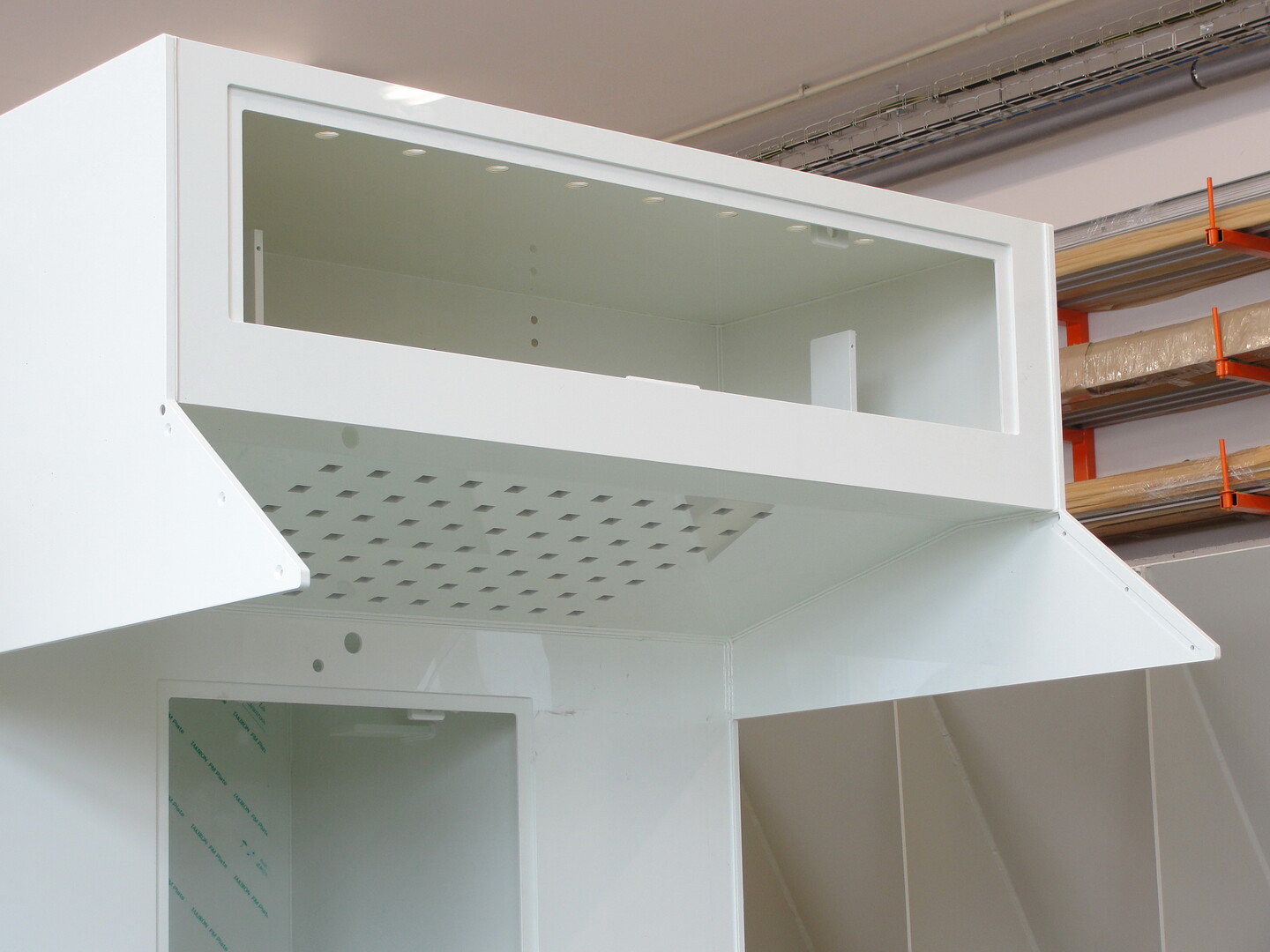 Mezi zakázkové výrobky řadíme např. atypické vzduchotechnické díly, záchytné vaničky, kryty různých tvarů, kapotáže jednoúčelových strojů, lišty, profily, atd.